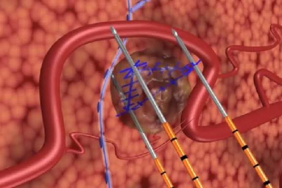 Likita mai kula da ɗaukar hoto (radiologist) ko likitan tiyata yana amfani da CT scan ko Ultrasound guidance wajen saka allurai masu kaifi guda biyu zuwa shida (ko fiye) a wurin da ciwon ke cikin jiki. Waɗannan allurai su ne ke isar da ƙarfin lantarki mai ƙarfi zuwa yankin ciwon.