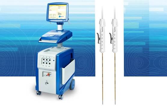 - Electrodes (allurai masu tsini): ana soka su cikin yankin ciwon da aka nufa ta ƙarƙashin jagorancin CT scan ko Ultrasound don tabbatar da daidaito.