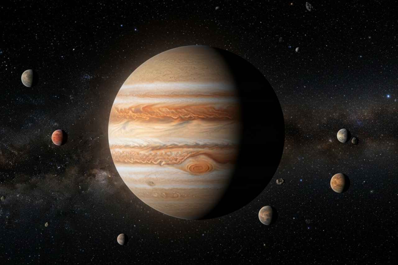Shekara ɗaya a Jupiter shekaru 12 ne na Earth, amma kuma kwana ɗaya, awa 10 ne kacal. Jupiter ba a zafi ko kaɗan. Yanayin sanyin ya fara ne daga digiri -145 a ma’aunin Celcius zuwa abin da yai gaba. Nisa tsakanin Jupiter da rana tafiyar kilomita miliyan 778,500,000 ce.